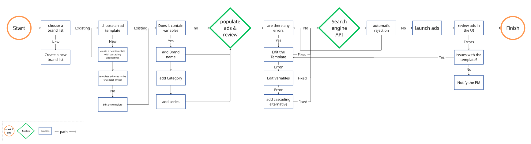 Ad management was a manual, fragmented process with no oversight of landing page accuracy or brand coverage. Without a customisable solution, reacting to short-term promotions was slow and error-prone. I recognised that we needed an automated tool to streamline ad creation and ensure strict adherence to brand guidelines and media requirements.