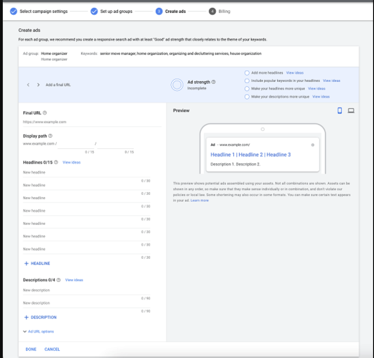 Commercial Relevance: Developing a system that generates brand-specific, keyword-rich ad copy tailored to specific landing pages, ensuring maximum performance across Google, Bing, Yahoo JP, Naver, and Baidu.