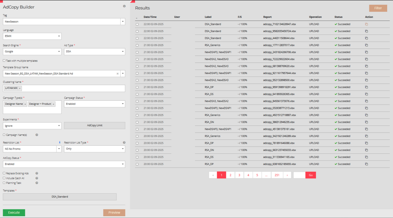 The Evolution Over time, the tool evolved into a central Template Library, allowing a single language update to sync across multiple accounts simultaneously. I also implemented a "weekly re-run" feature to ensure 100% brand coverage and automated the deployment of variations for A/B testing, transforming the tool into a robust control centre for global ad management.
